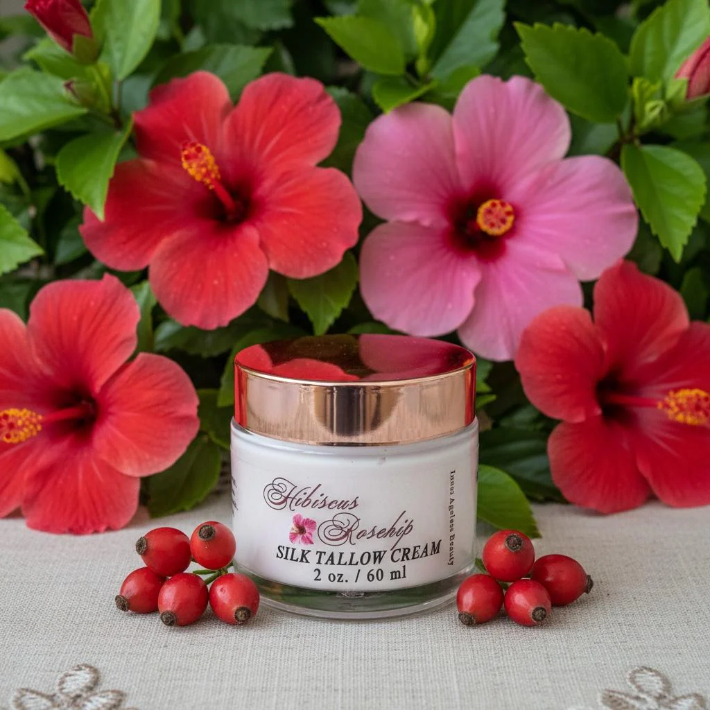This hibiscus and rosehip tallow cream is designed for nights when skin needs more than surface hydration. As the final step in your routine, it melts into the skin to help lock in moisture and support overnight recovery.
